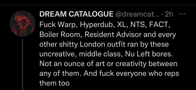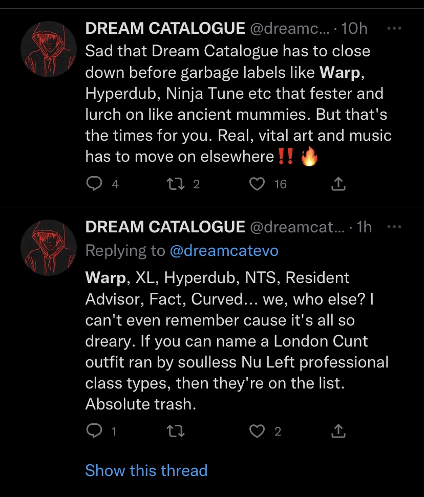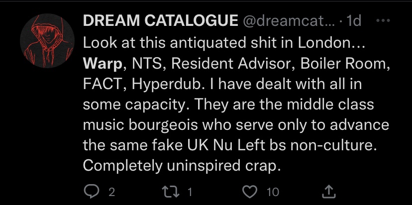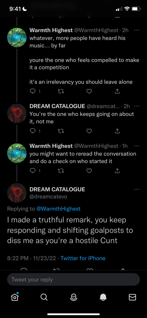 Twitter is a weird hostile place. My account is still sitting over there occasionally bringing in some views to this blog. Twitter is a place where everything is misconstrued and everything is put in the worst possible light. When Musk took over I opened a Mastodon account and my blog has been actually done better promoting it there. I get more engagement on Mastodon. But anyway, at some point last year the Dream Catalogue account guy started having some kind of crisis or something. Twitter is also weird in that once you have followers they will continue to back you to embarrassing extremes. So it went with the DC guy when he posted this while seemimgly on the edge of some sort of breakdown